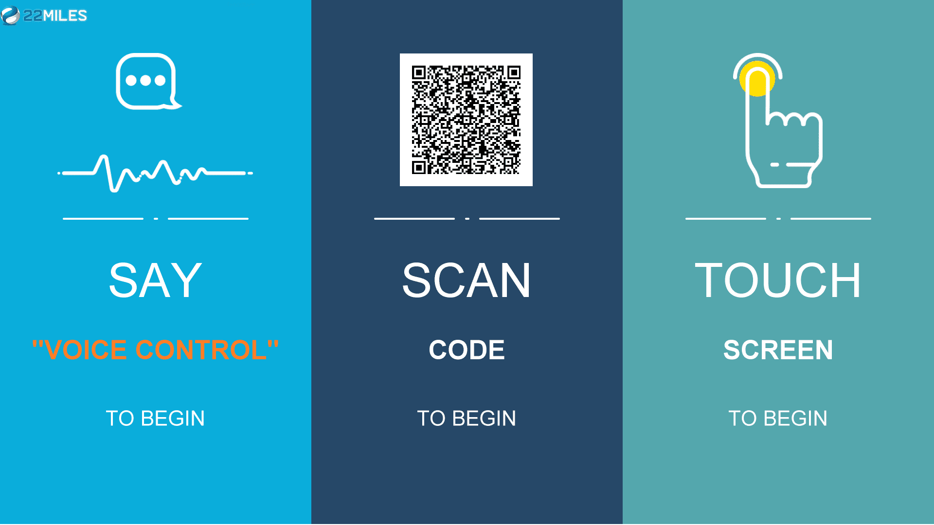 Touchless Touch | Voice Activation & Control – Touchless Touch creates a fully interactive, touch-free user experience using 22Miles’ Voice Activation/Recognition & Control capabilities. A component of the digital signage solution, Touchless Touch can be integrated into any kiosk or signage application to provide touch-free accessibility and wayfinding – an increasingly important new communication tool in a COVID-impacted world.