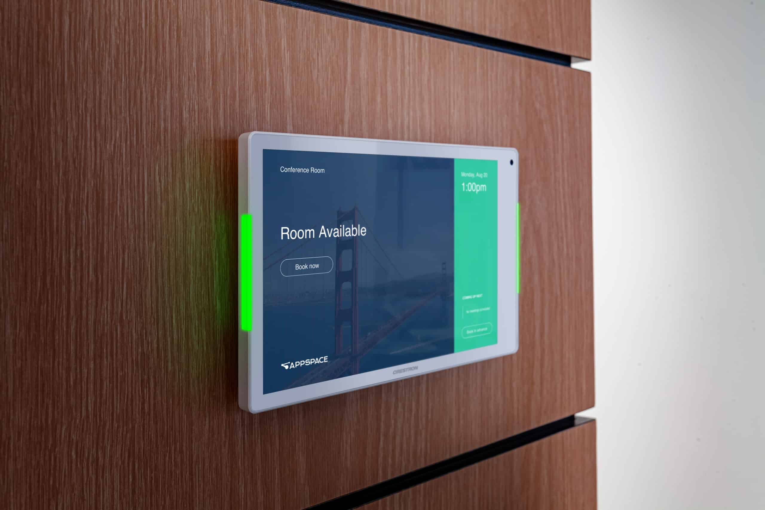 The 80 Series portfolio is built around three distinct variations, so organizations can deliver the right interface for every space: room scheduling panels with built-in light bars, wall mount control touch screens, and tabletop control touch screens. From compact 8-inch panels outside small rooms to 10-inch in-room control interfaces in boardrooms, the 80 Series provides a consistent look and feel across the enterprise while allowing the interface to be tailored to each room’s workflow.