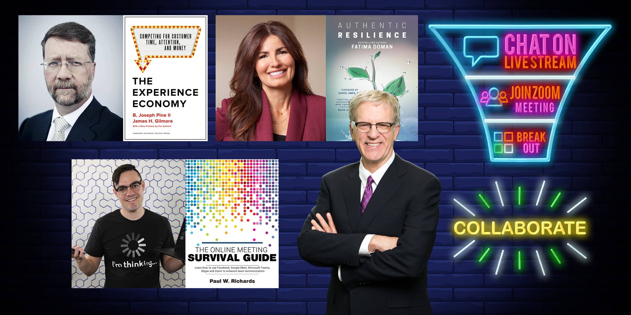 Attendees will hear directly from live streaming experts, professional podcasters, and executives from Zoom. Joseph Pine, author of “The Experience Economy” will kick of the event with a keynote designed to help attendees transform customer experiences through the professional use of video communications. Fatima Doman, author of “Authentic Resilience,” will speak on driving personal engagement, productivity, resilience, and well-being, through sustainable high-performance actions both at work and in life. Author, Paul Richards, and host of the popular live streaming show, StreamGeeks, will talk podcasting and provide the digital version of his new book “The Online Meeting Survival Guide” free for event attendees.