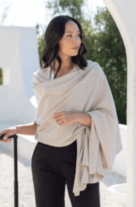 Kim Lancaster gave the gift of style and comfort with this supersoft travel blanket/scarf that enveloped her on trips to Vegas and Paris alike this year.